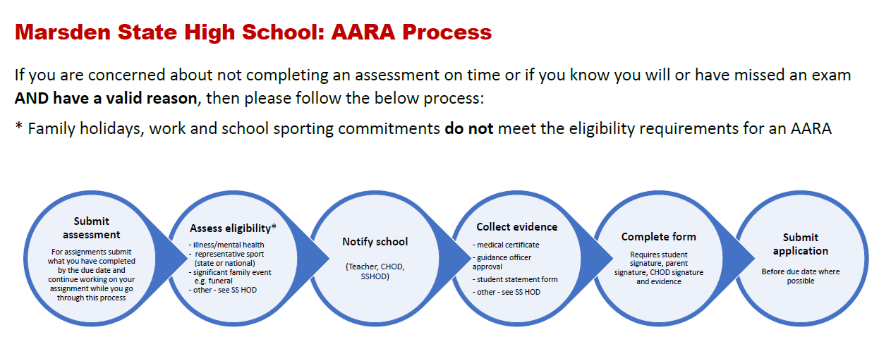 Marsden State High School's Assessment Policy outlines student's responsibilities regarding preparation, completion and submission of assessment. The policy intends to support student's proactive approach to assessment.